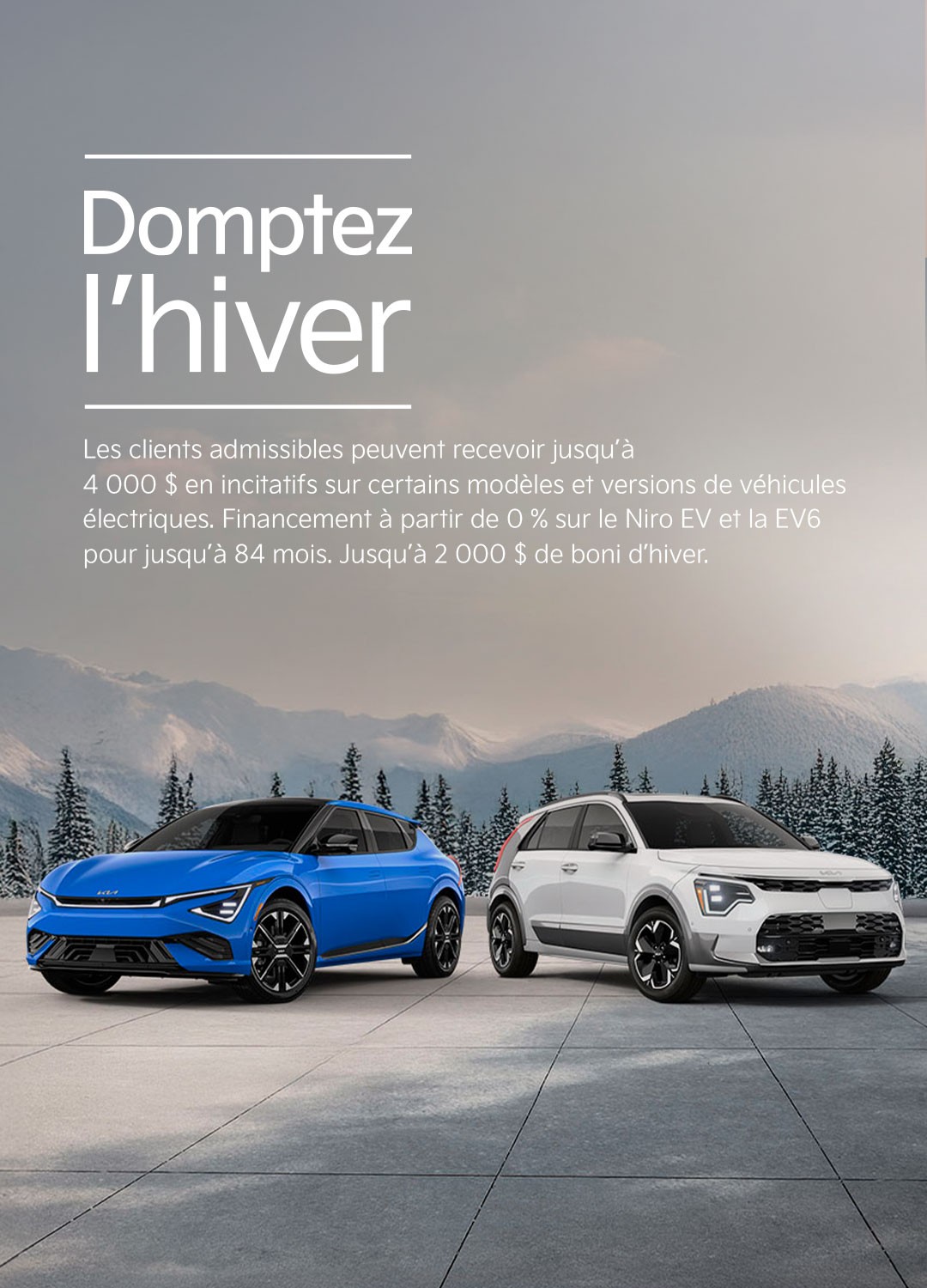 La gamme Kia peut aussi compter sur plusieurs véhicules électrifiés, qui offrent une efficacité énergétique incroyable sans sacrifier sur la puissance. On retrouve dans la catégorie des véhicules électriques Kia la fameuse EV6 2024 de même que la gamme Niro 2025, incluant le Niro PHEV et le Niro EV. L’hybride et l’hybride rechargeable est aussi un créneau très en demande et ici, Kia Cowansville répondera à vos besoins avec le Sportage 2025 hybride et PHEV ou encore avec le Sorento 2025 hybride et PHEV, des véhicules dotés d’une grande autonomie et offrant un plaisir de conduire indéniable; venez les voir de plus près dès maintenant.