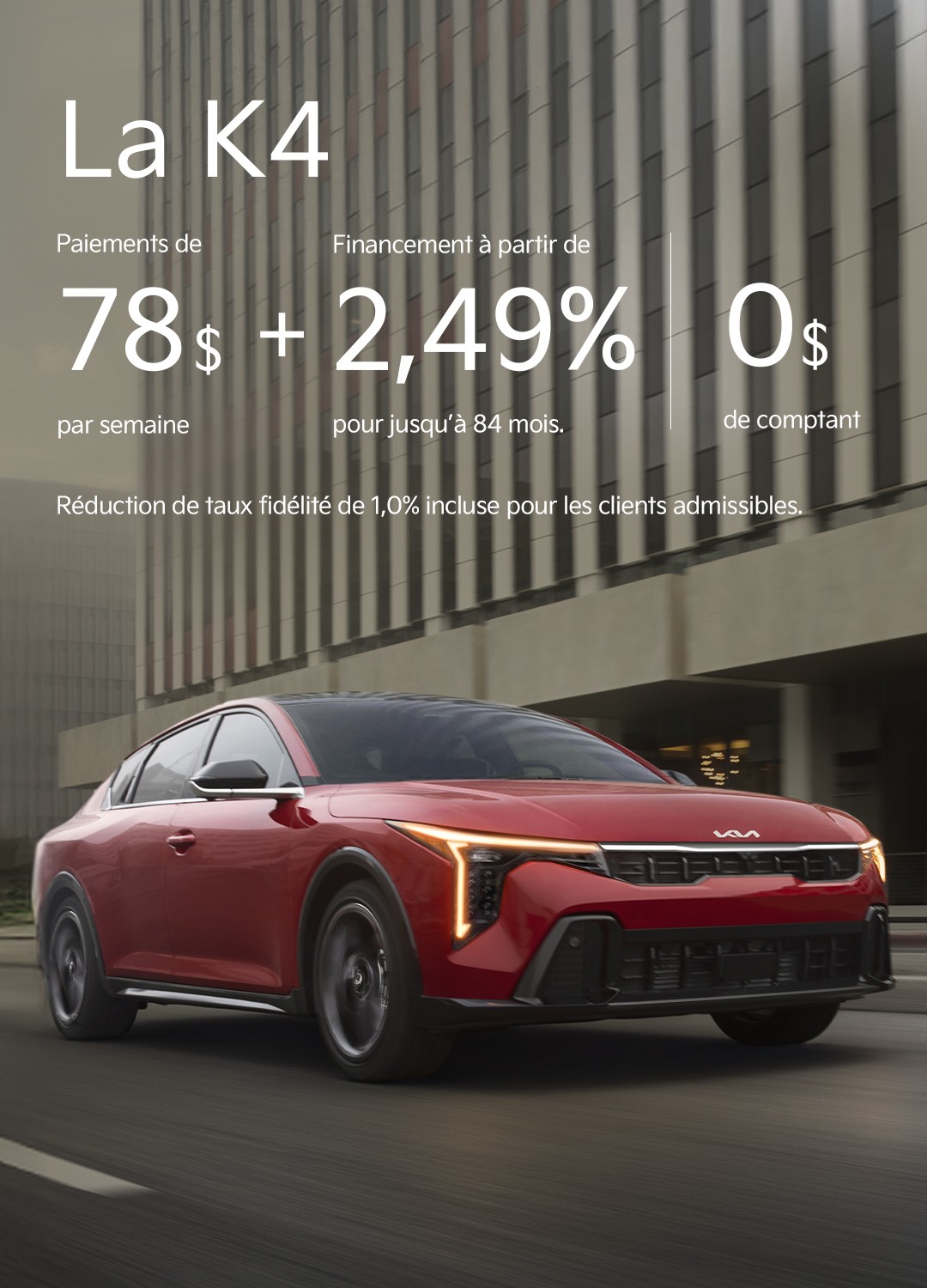 La catégorie des VUS et minifourgonnettes connaît une popularité sans cesse grandissante, dans laquelle les véhicules Kia à vendre près de St-Jean font très bonne figure et se démarquent de la concurrence. De nombreux VUS Kia vous sont proposés, en fonction de vos besoins : le Sportage 2025 et le Sorento neuf se retrouvent parmi les modèles les plus populaires, alors que la minifourgonnette Carnival 2025 continue de faire la joie des familles grâce à sa polyvalence et son grand volume intérieur. Le Kia Soul 2025, pour sa part, séduit par son design unique et ses nombreuses versions. Vous cherchez un VUS robuste, imposant et pouvant accueillir jusqu’à 8 occupants? Le Kia Telluride 2025 est fait pour vous! Vous aurez aussi l’embarras du choix parmi notre vaste inventaire de berlines Kia comme la Kia K4 2025; faites-en l’essai dès aujourd’hui.